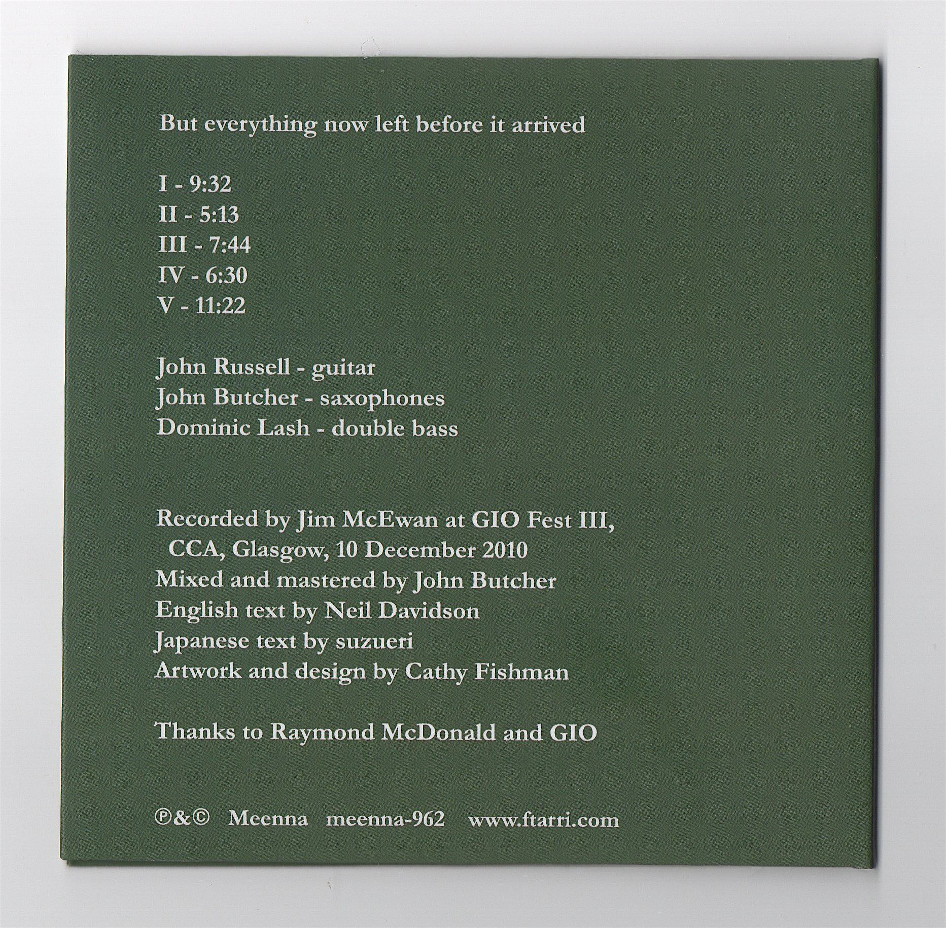 John Russell / John Butcher / Dominic Lash - But everything now left before it arrived (一枚組CD)